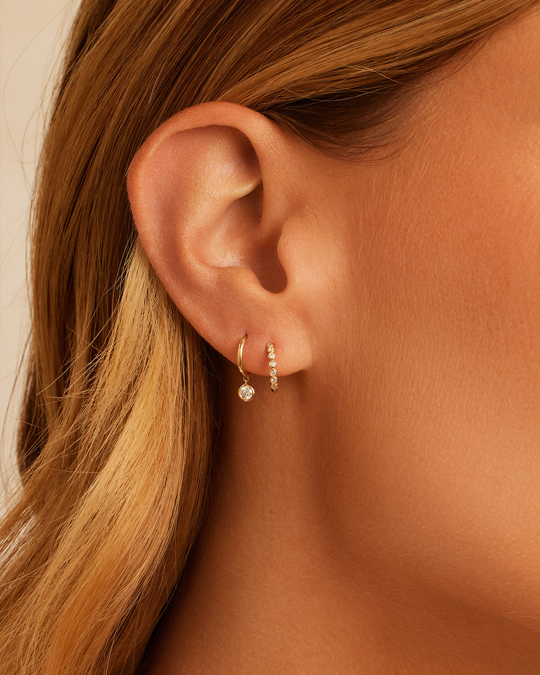 The Classic Diamond Single Huggie is a versatile pair of earrings that adds a touch of elegance to any look. Wear it solo for subtle shine or layered with other favorites for a personalized, effortless style.