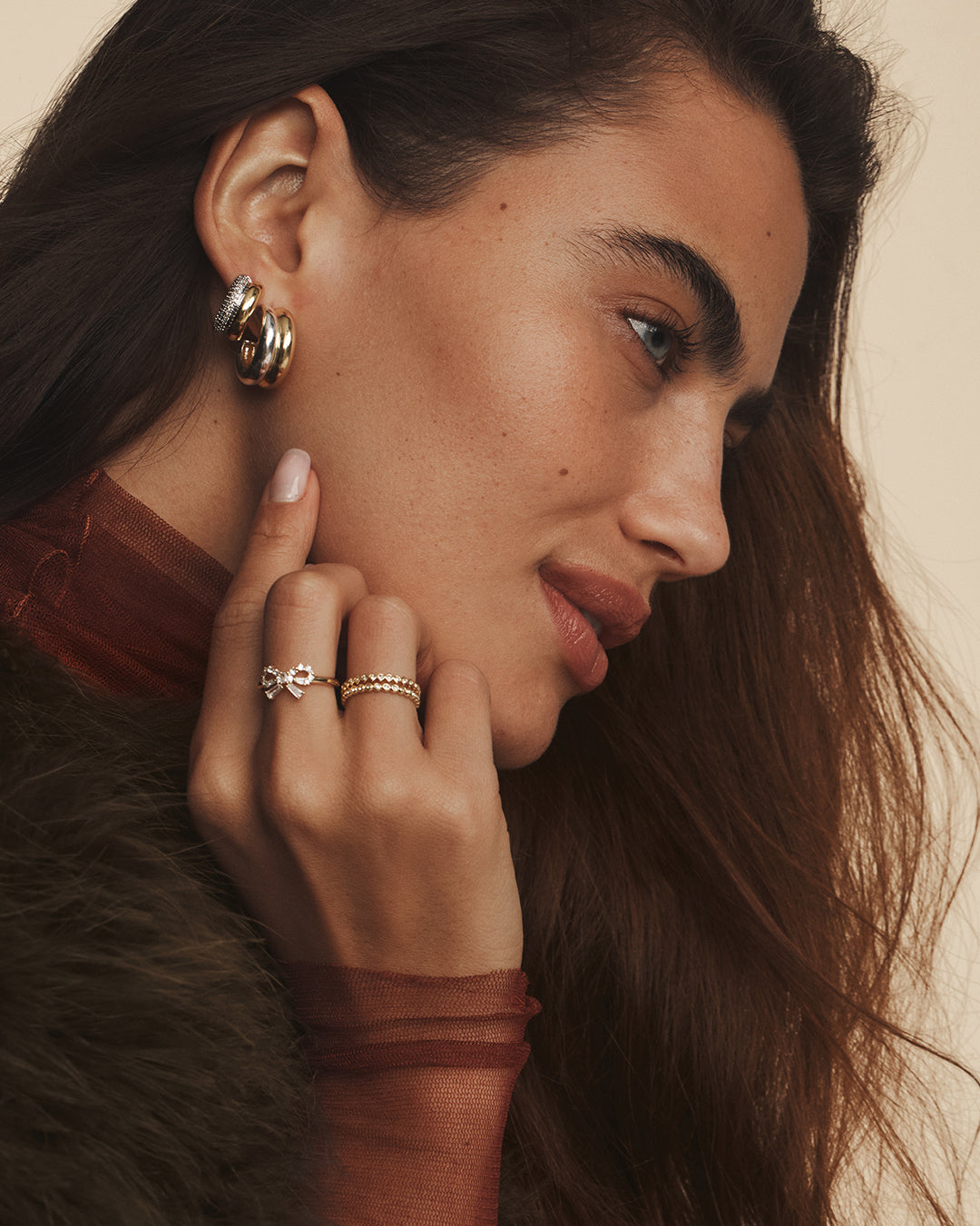 The Lou Shimmer Stacked Huggies is a versatile pair of earrings that adds a touch of elegance to any look. Wear it solo for subtle shine or layered with other favorites for a personalized, effortless style.