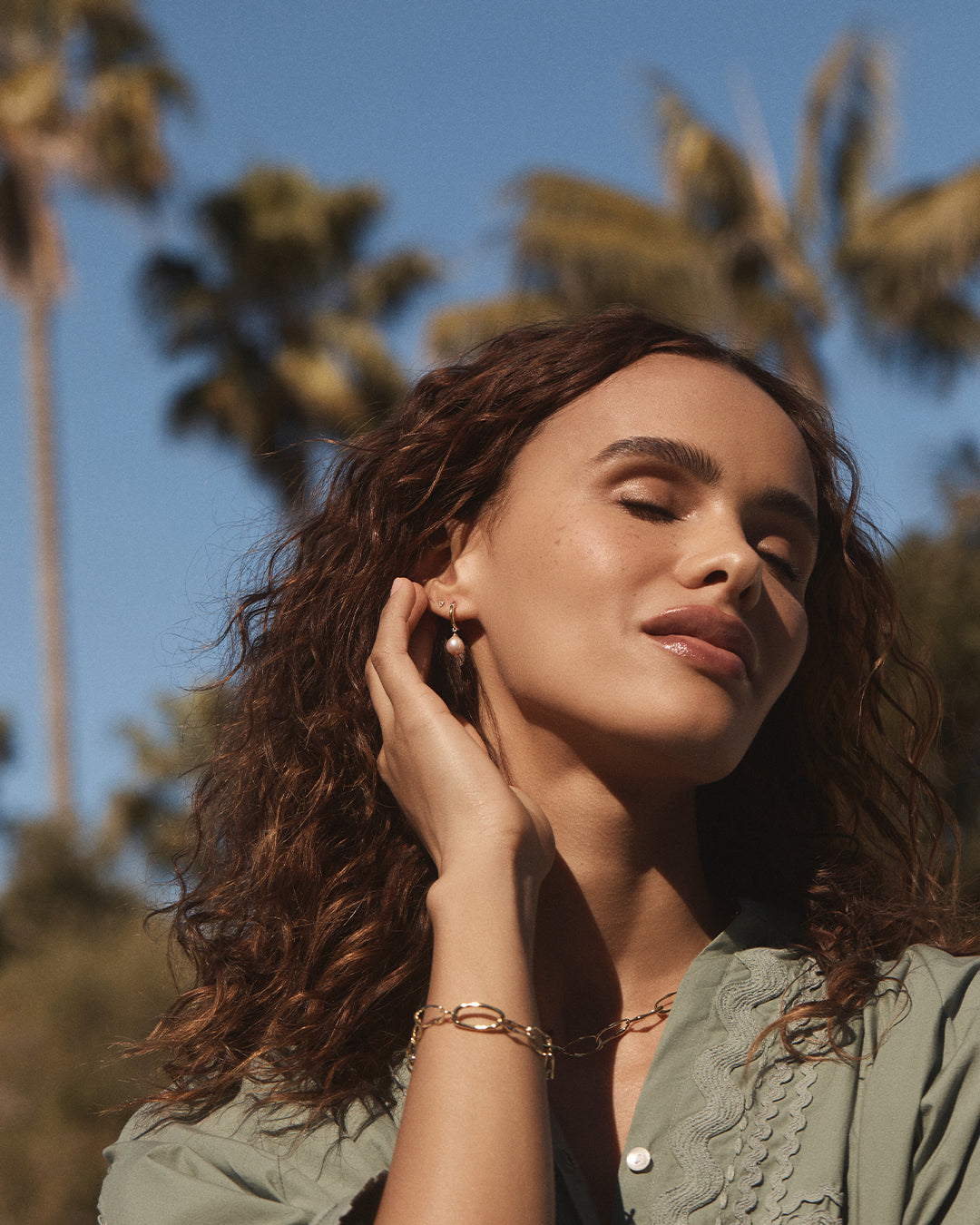 The Pink Pearl Huggies is a versatile pair of earrings that adds a touch of elegance to any look. Wear it solo for subtle shine or layered with other favorites for a personalized, effortless style.